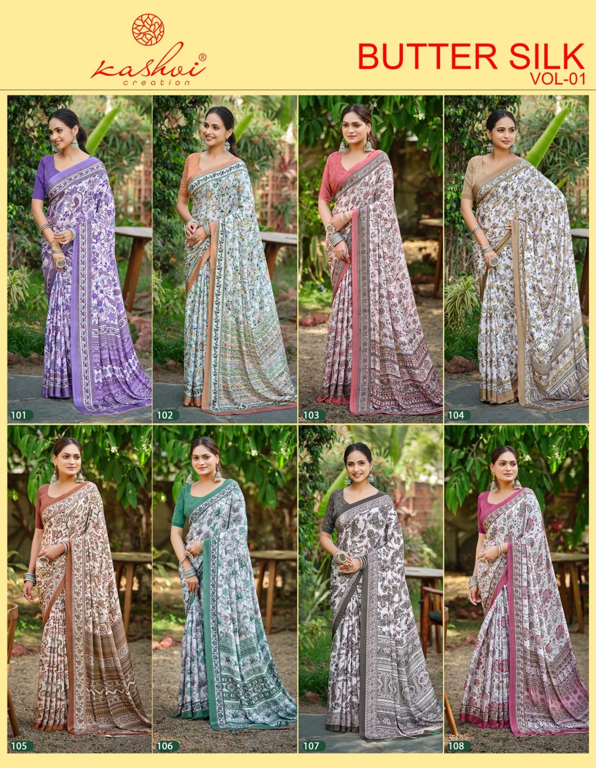 🌻 KASHVI CREATION – BUTTER SILK SAREE CATALOGUE 🌻