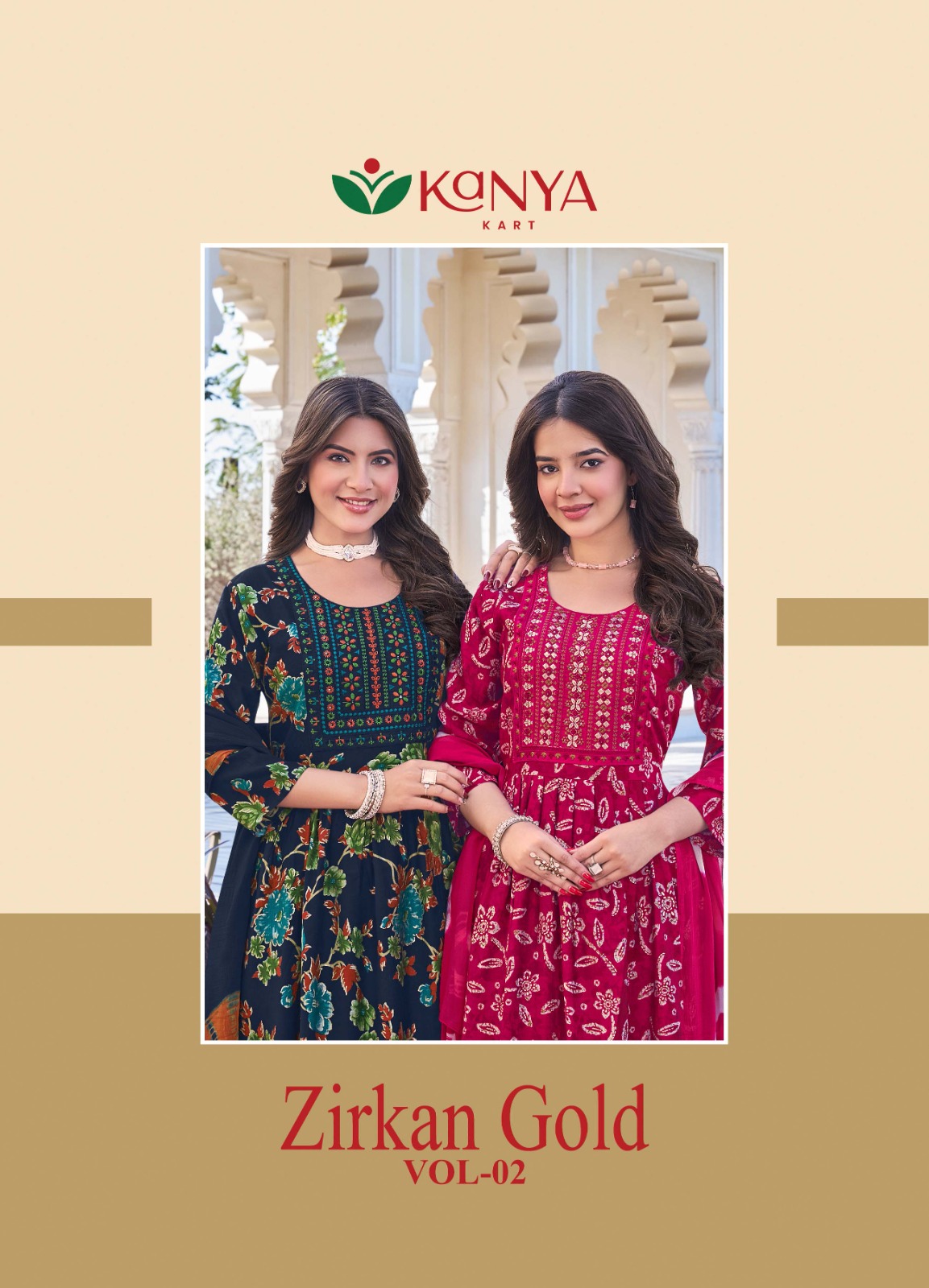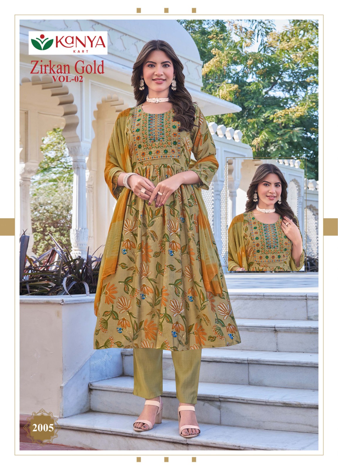 KANYA KART Zirkan Gold Vol-1 Umbrella Cut Kurti Pant Dupatta Set