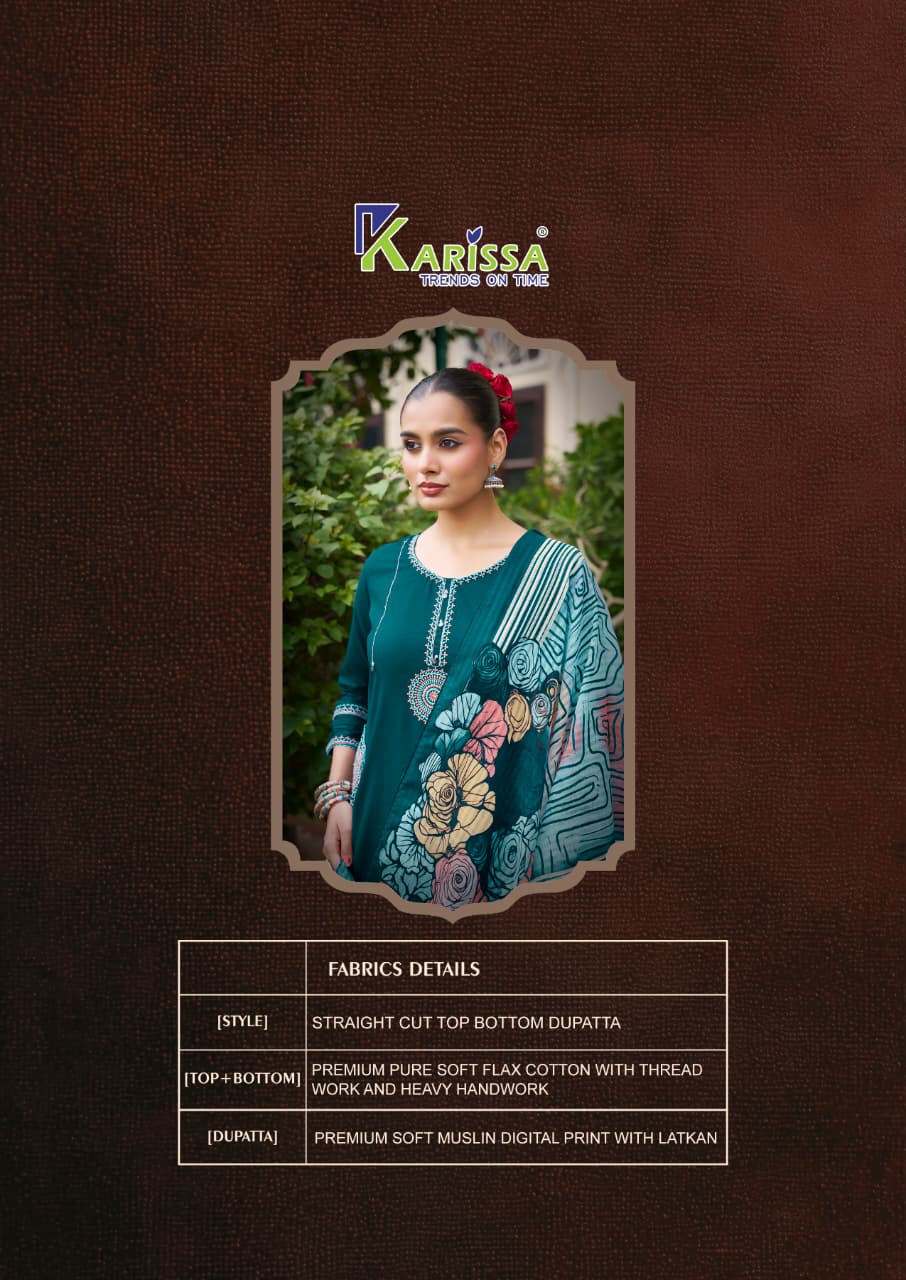 Karissa SANIA Design 4 comes with beautiful thread work and handwork detailing, giving the outfit a boutique and premium appearance. The fine craftsmanship makes it suitable not only for regular wear but also for small functions, festive occasions, and special gatherings.