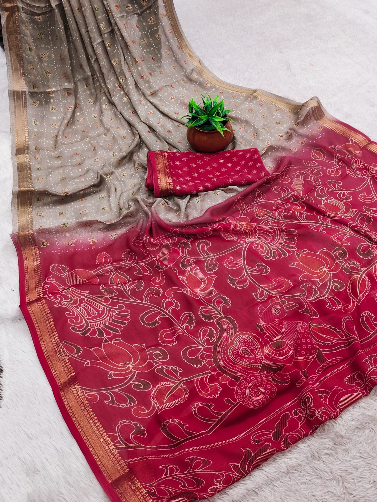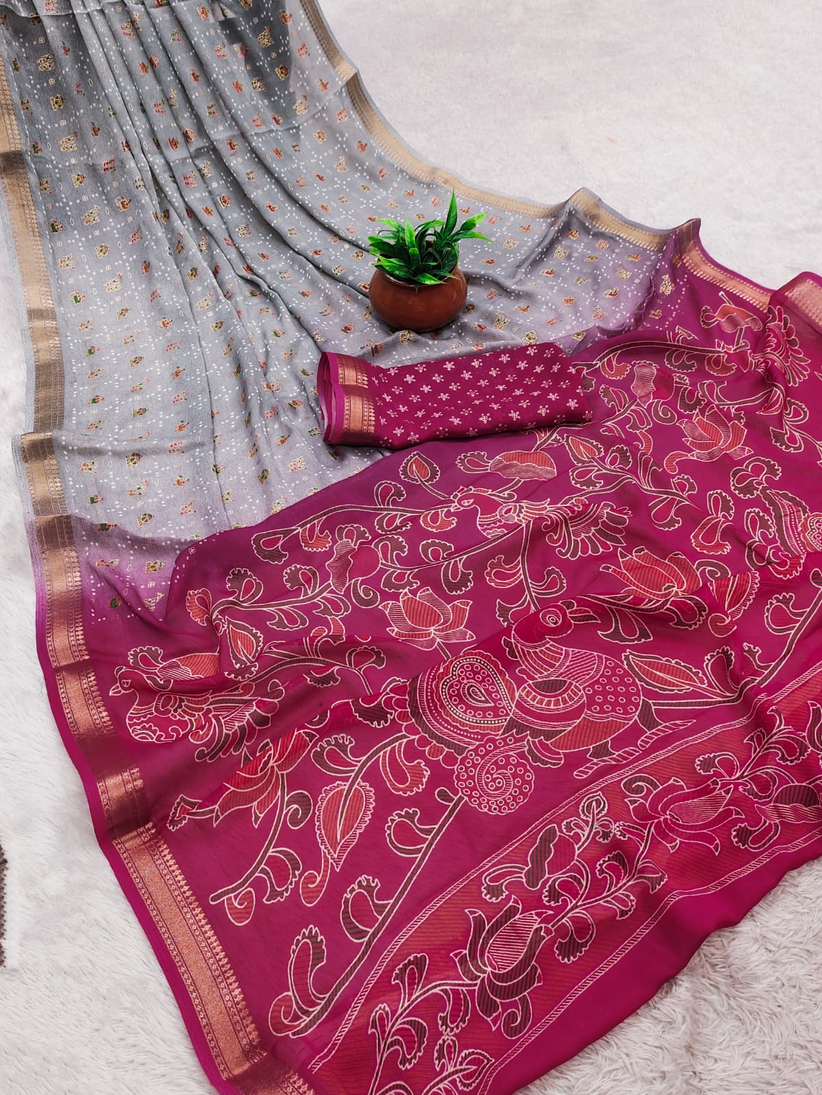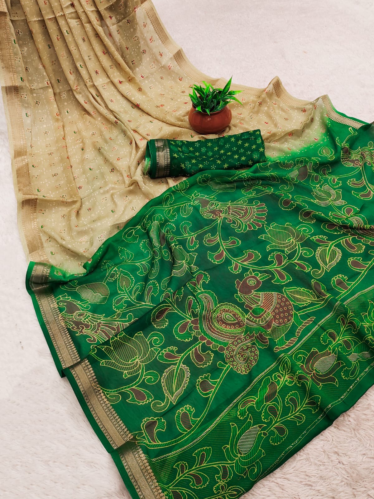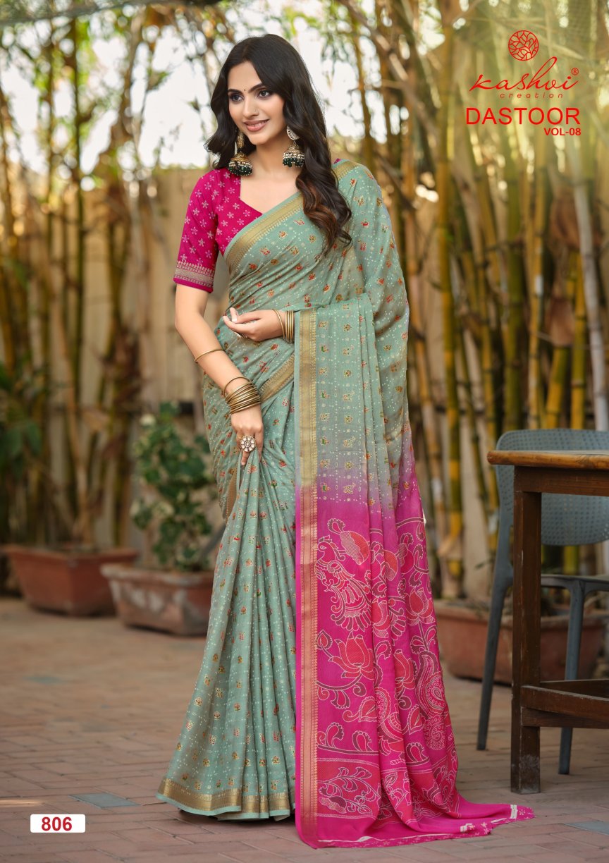✅ KASHVI CREATION – DASTOOR VOL-8 (Viscose Bright Moss Foil Saree Set)