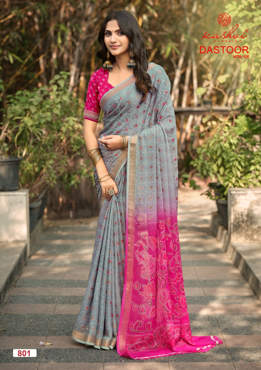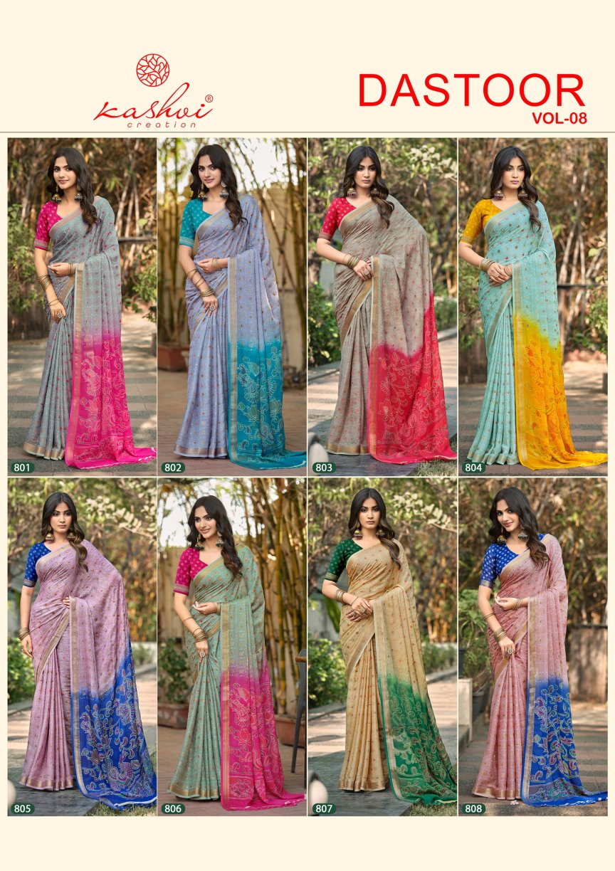 If you are looking for a premium saree catalogue with high demand and attractive finishing, then KASHVI CREATION – DASTOOR VOL-8 is the perfect option for your wholesale business. Book your set today and add a premium foil shine collection to your stock.