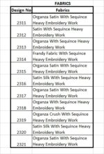 - (All fabrics as per design number)
