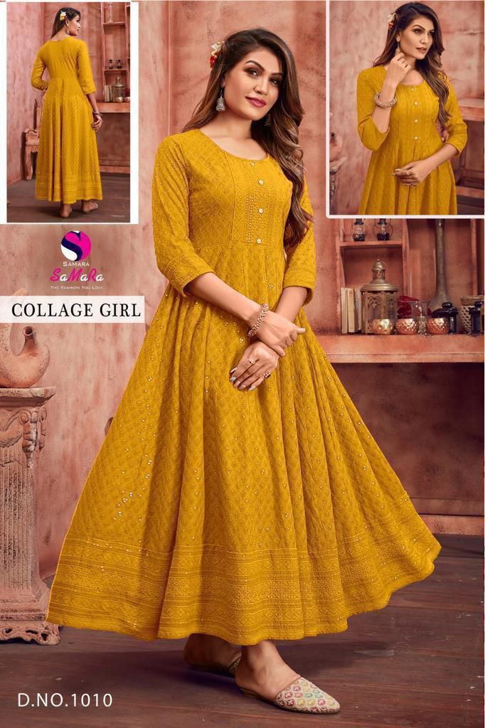 The COLLEGE GIRL catalogue by SaMaRa is crafted with premium fabric quality and stylish finishing to match the demand of today’s market. This collection is highly recommended for wholesalers, resellers, boutique owners, and international buyers who want ready-to-sell readymade kurtis with excellent quality and attractive designs.