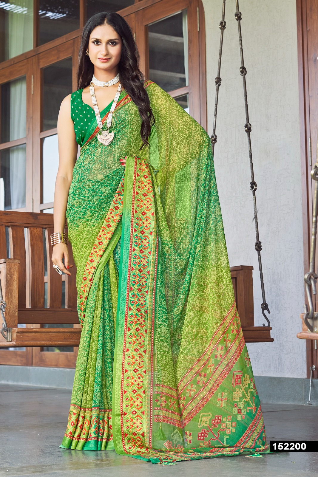 - Fabrics : Moss Georgette ,Ethnic Print