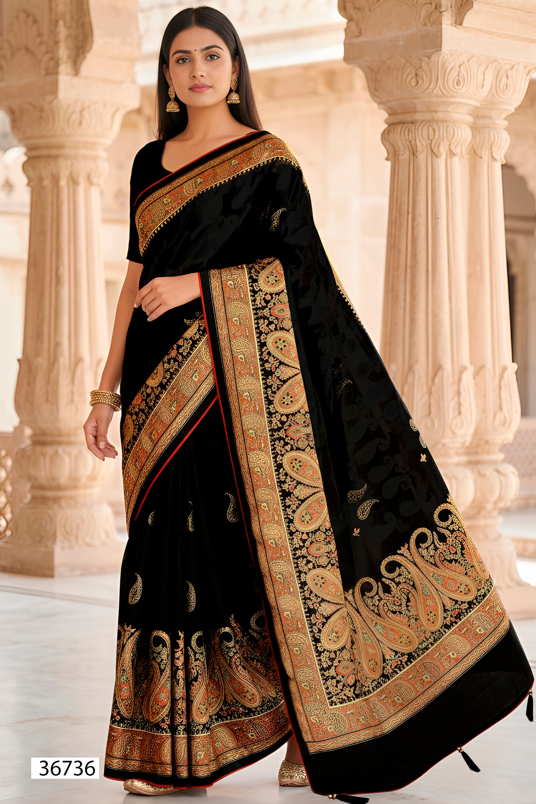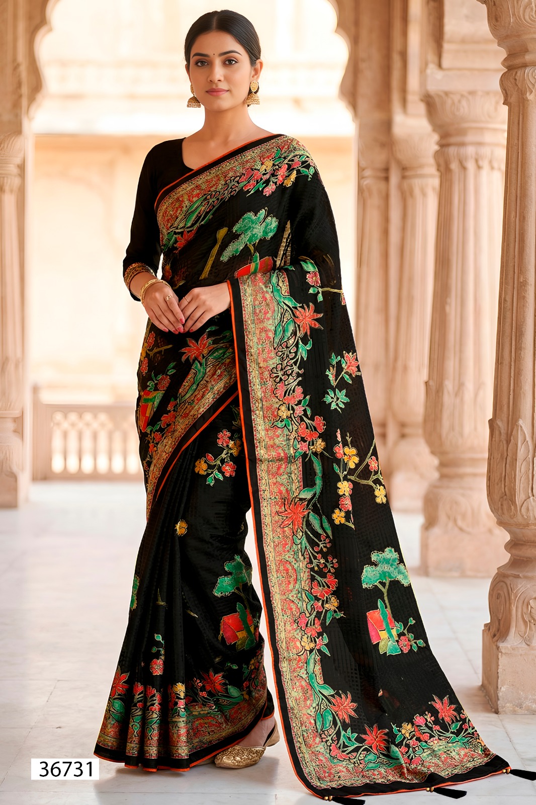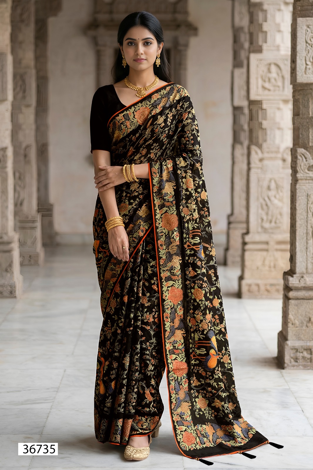 This 6-piece catalogue is crafted on rich Brasso fabric, featuring ethnic-inspired prints that bring a bold yet graceful look.